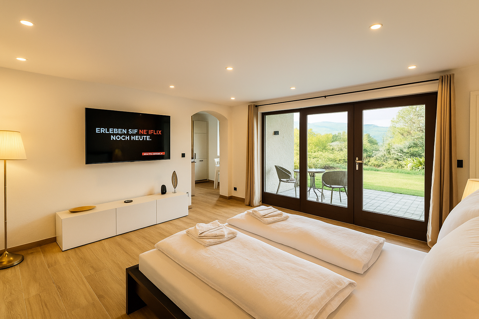 Modernes Apartment mit durchdachtem Design, Smart-TV und Küche. Ideal für längere Aufenthalte in Kempten.